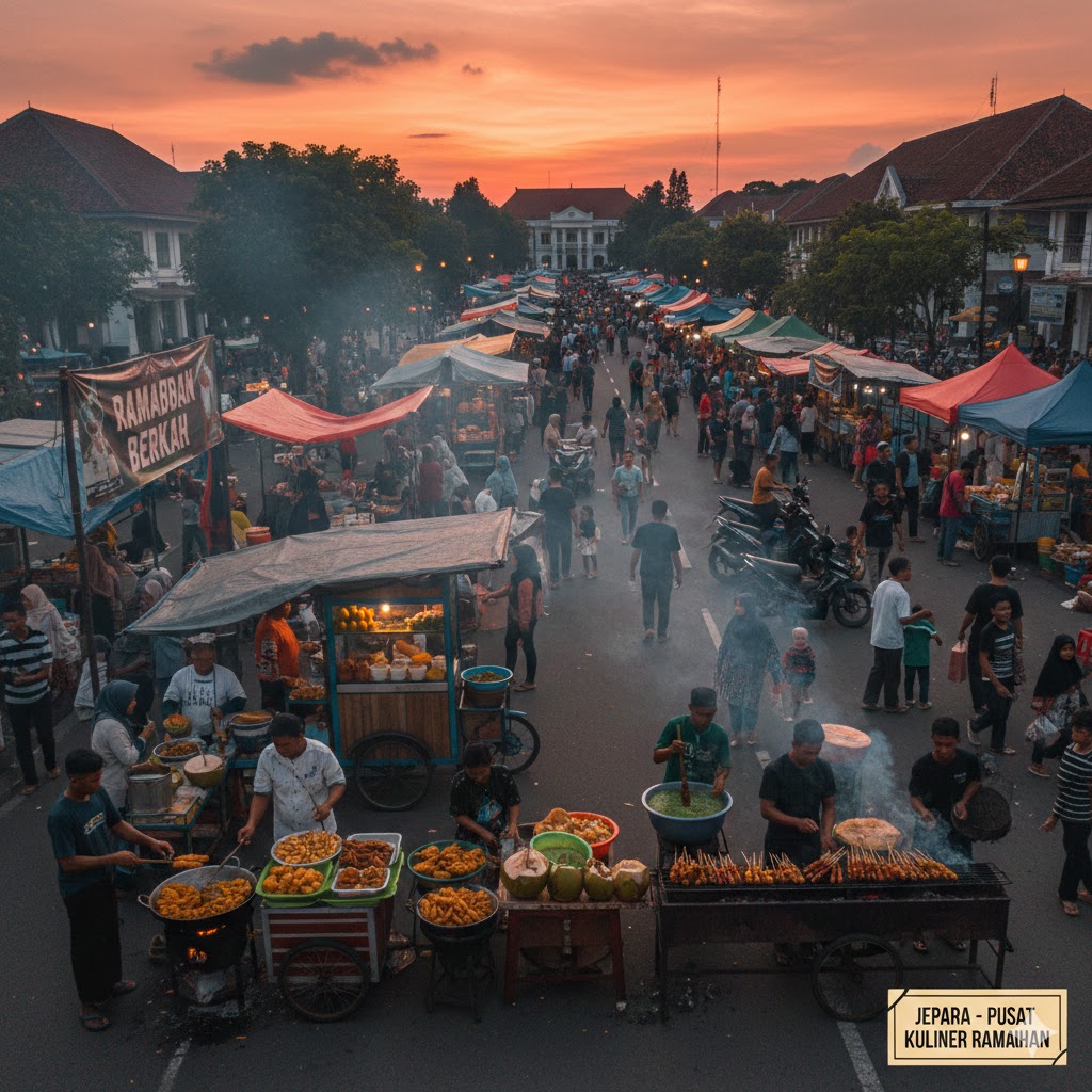 nujepara.or.id- Setiap sore menjelang berbuka, pemandangan di Kabupaten Jepara berubah drastis. Mulai dari perempatan jalan utama hingga sudut-sudut desa, aroma gorengan, sego tuntum, aneka ragam lawuh, segarnya es buah, es degan, horog-horog, adon adon coro, es dawet atau cendol hingga kepulan asap bakaran roti, sosis, pentol, sate aci mulai memenuhi udara. Fenomena “Ngabuburit” bukan sekadar tradisi menunggu adzan Maghrib, melainkan menjadi mesin penggerak ekonomi yang luar biasa bagi pelaku Usaha Mikro, Kecil, dan Menengah (UMKM) lokal.